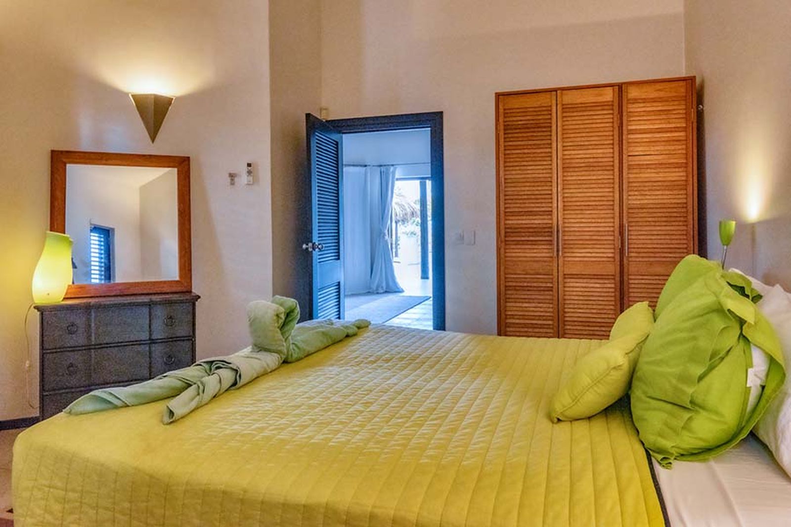 Villa Mariposa features four large bedrooms with en-suite bathrooms. On the right wing of the house, you’ll find two bedrooms, while the master suite is located on the left side with its own private bathroom.