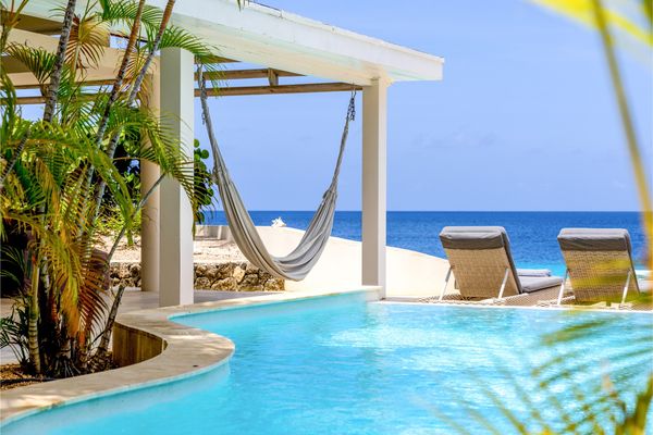 Kas Popchi is a beautiful ocean front villa consisting of two buildings, a mature tropical garden with private pool area and a private beach area, located on the southern part of the island. The design of this beach home offers not only a great deal of privacy, but also great views over the Caribbean sea, which makes this a lovely hidden paradise. Enjoy your vacation at a place where it is just you, lots of palmtrees and the ocean!