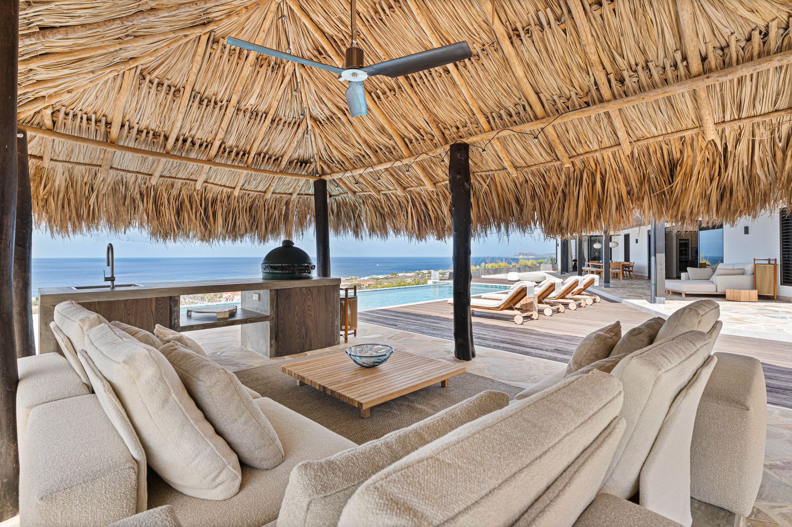 Kenmerkende elementen zoals het magnesium infinity zwembad, de royale buitenruimtes en de hoogwaardige afwerking maken Kas Karibe tot een bijzonder geheel.