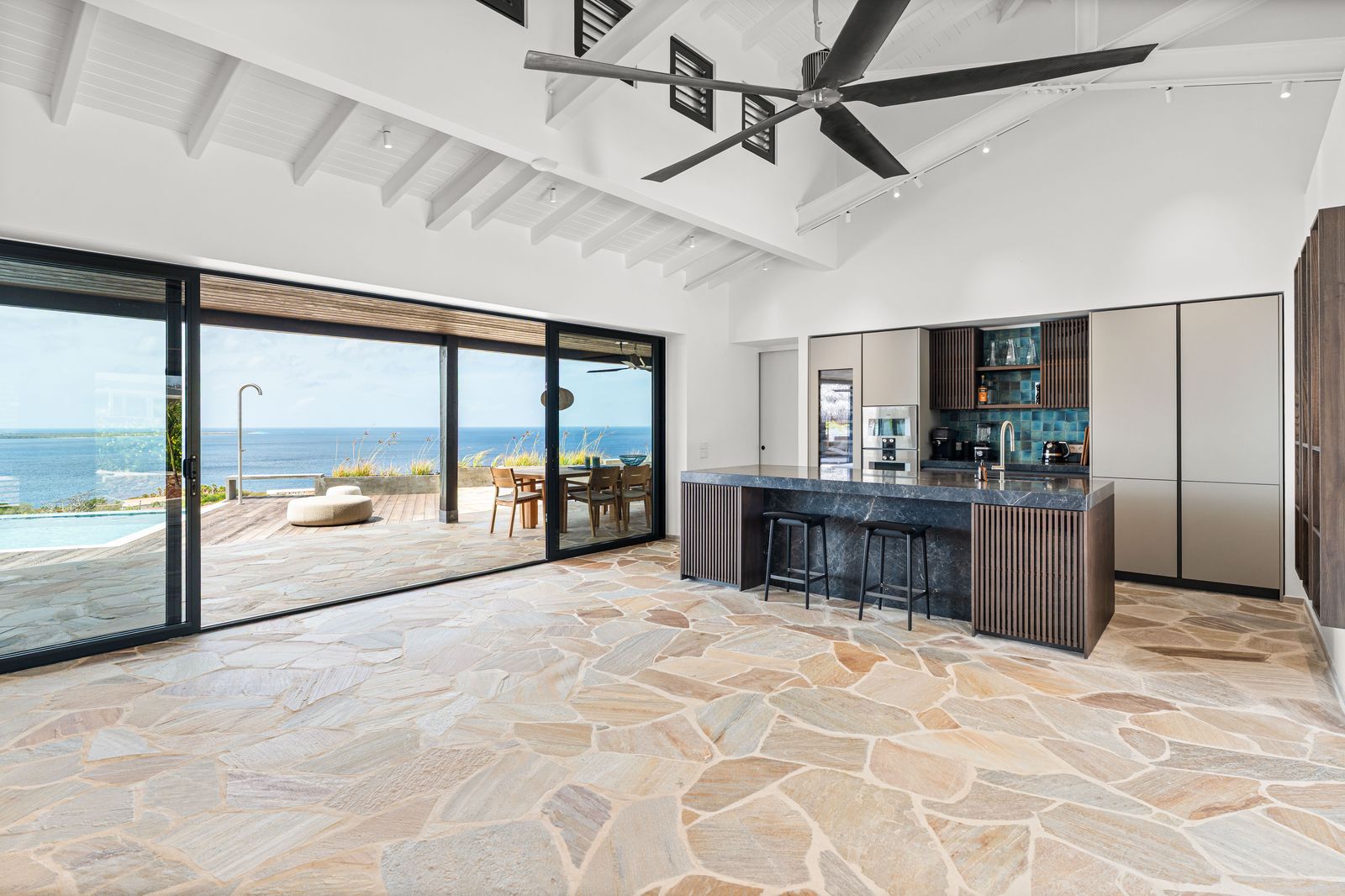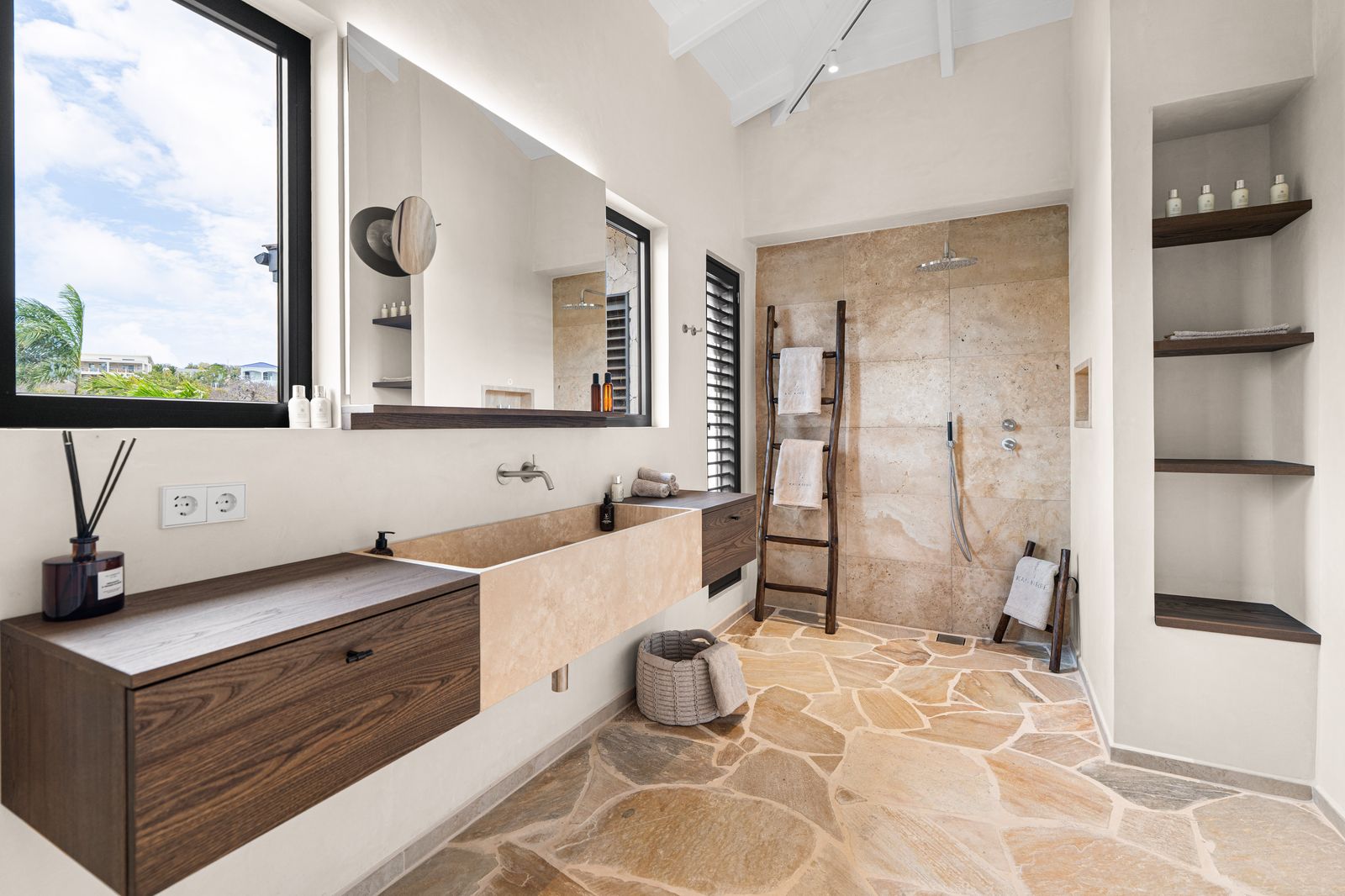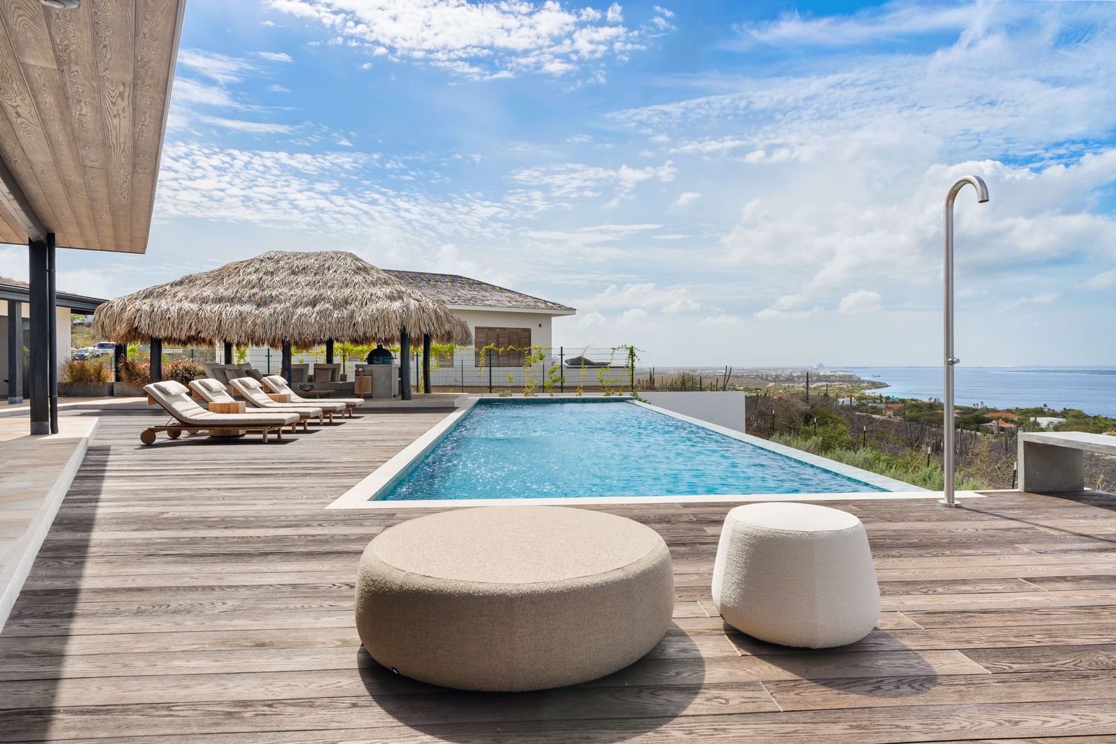 Deze uitzonderlijke woning onderscheidde zich door haar verfijnde ontwerp, naadloze overgang tussen binnen- en buitenleven en het adembenemende panoramische uitzicht over Bonaire en Klein Bonaire. Met een doordachte indeling, bestaande uit een ruim hoofdverblijf en separate gastenverblijven, bood de villa zowel comfort als privacy in een elegante setting.