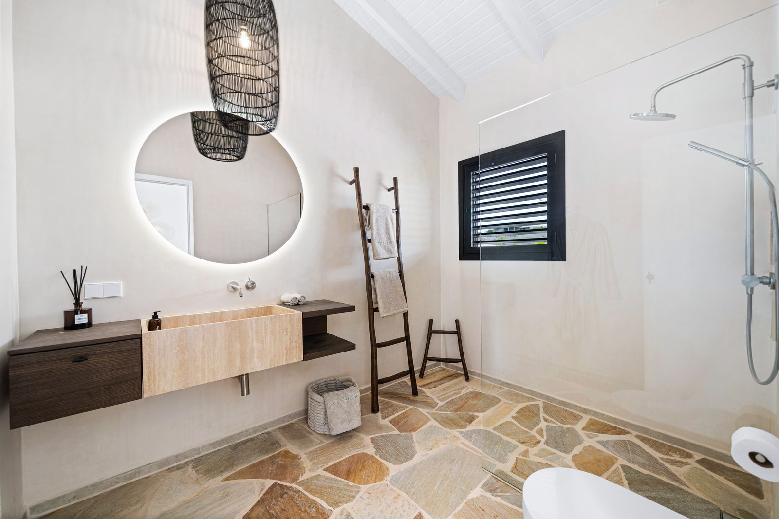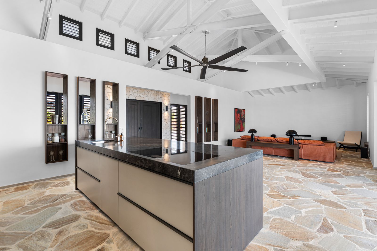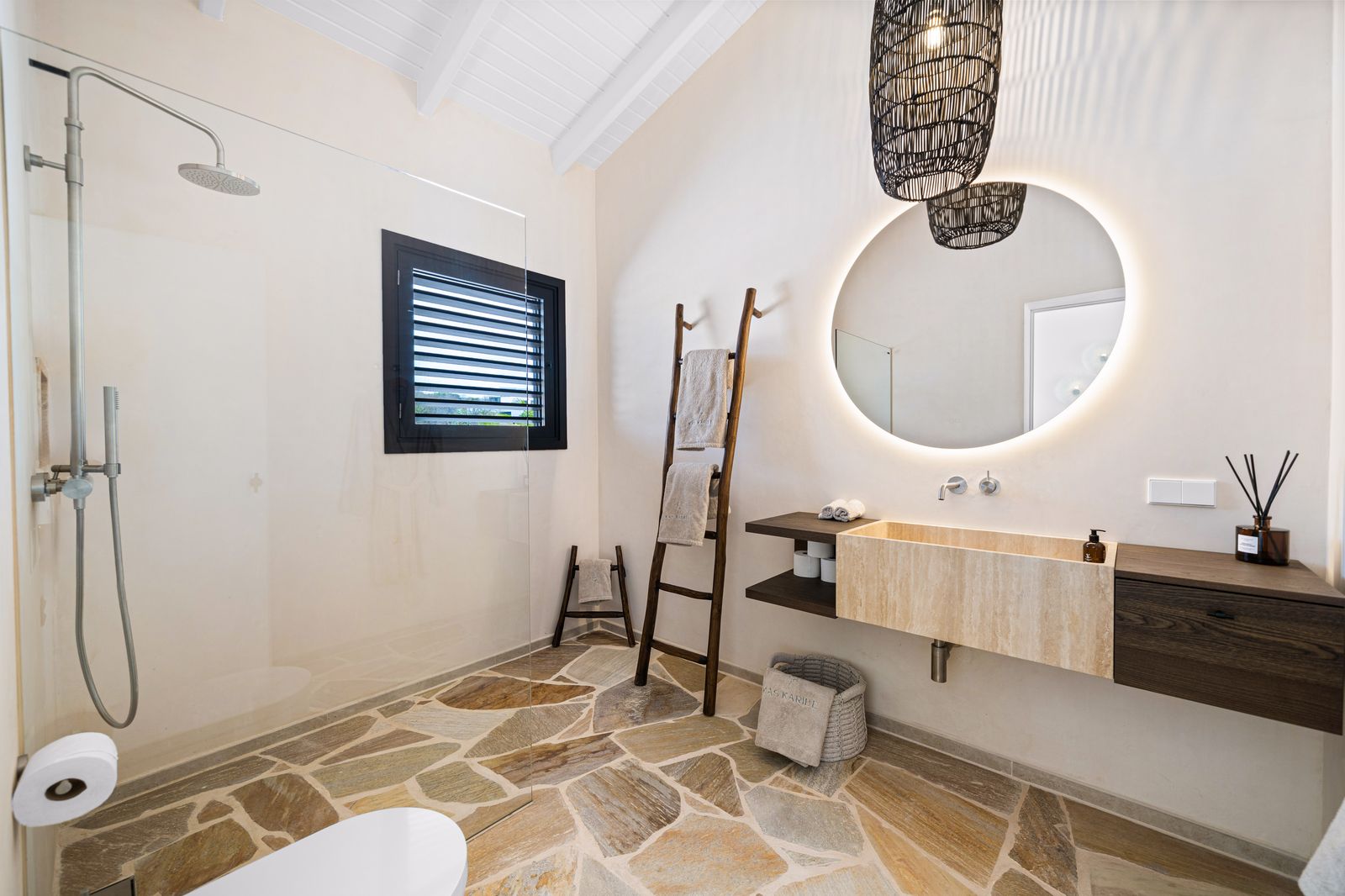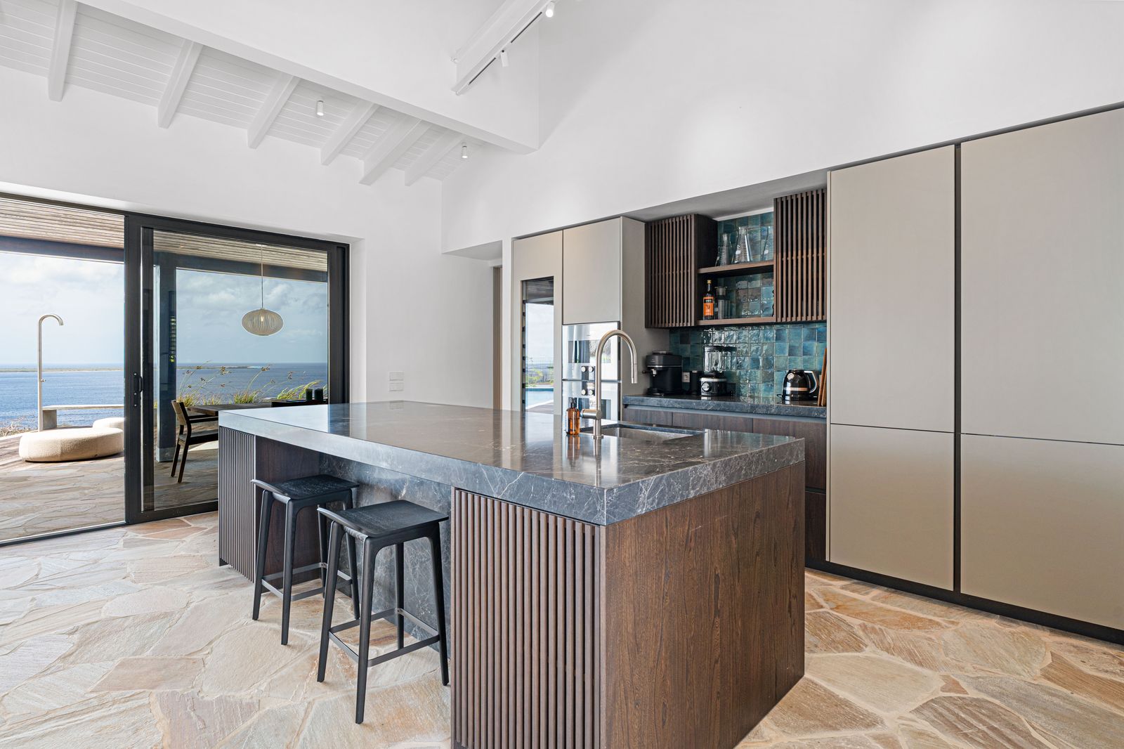 Deze uitzonderlijke woning onderscheidde zich door haar verfijnde ontwerp, naadloze overgang tussen binnen- en buitenleven en het adembenemende panoramische uitzicht over Bonaire en Klein Bonaire. Met een doordachte indeling, bestaande uit een ruim hoofdverblijf en separate gastenverblijven, bood de villa zowel comfort als privacy in een elegante setting.