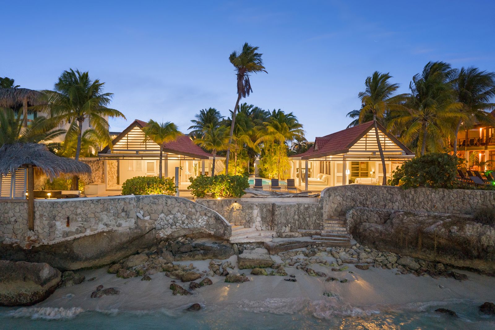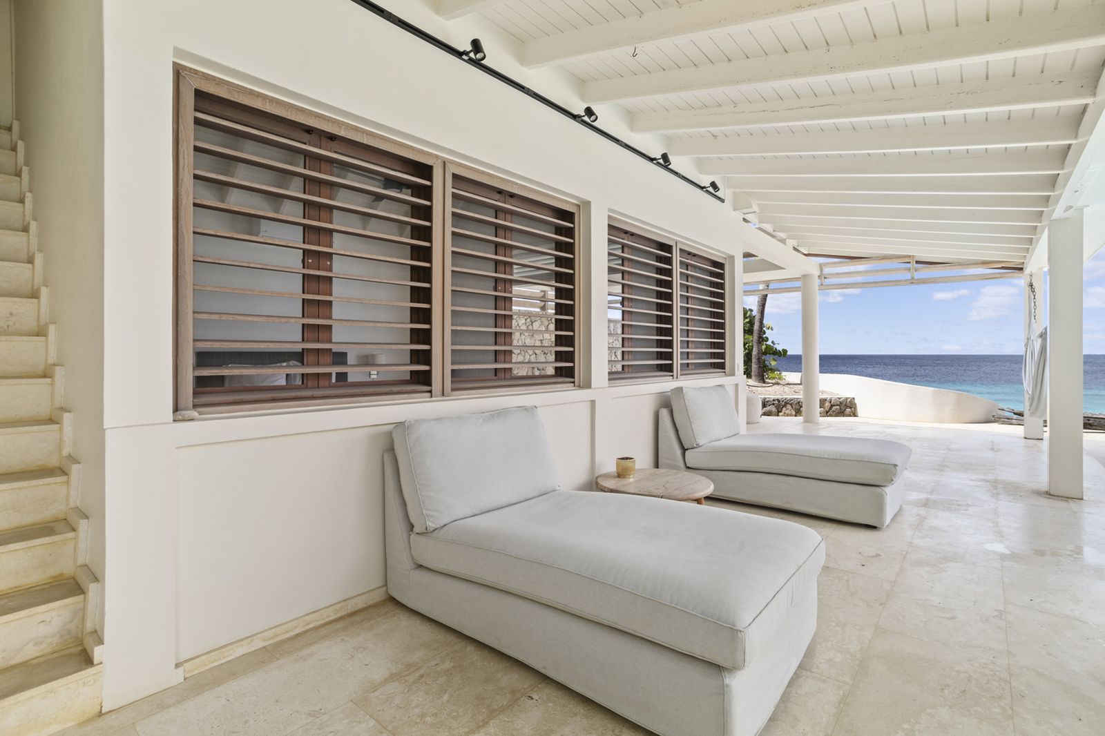 This house is right up against the water with a little private beach in the front. Very spacious with lots of comfortable furniture to overlook the sunsets at night. Eating breakfast out on the patio overlooking the Caribbean is off the charts.. I would definitely recommend this place.
