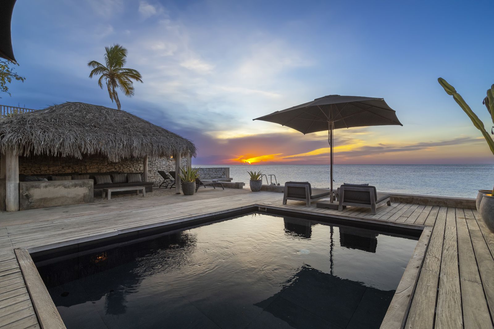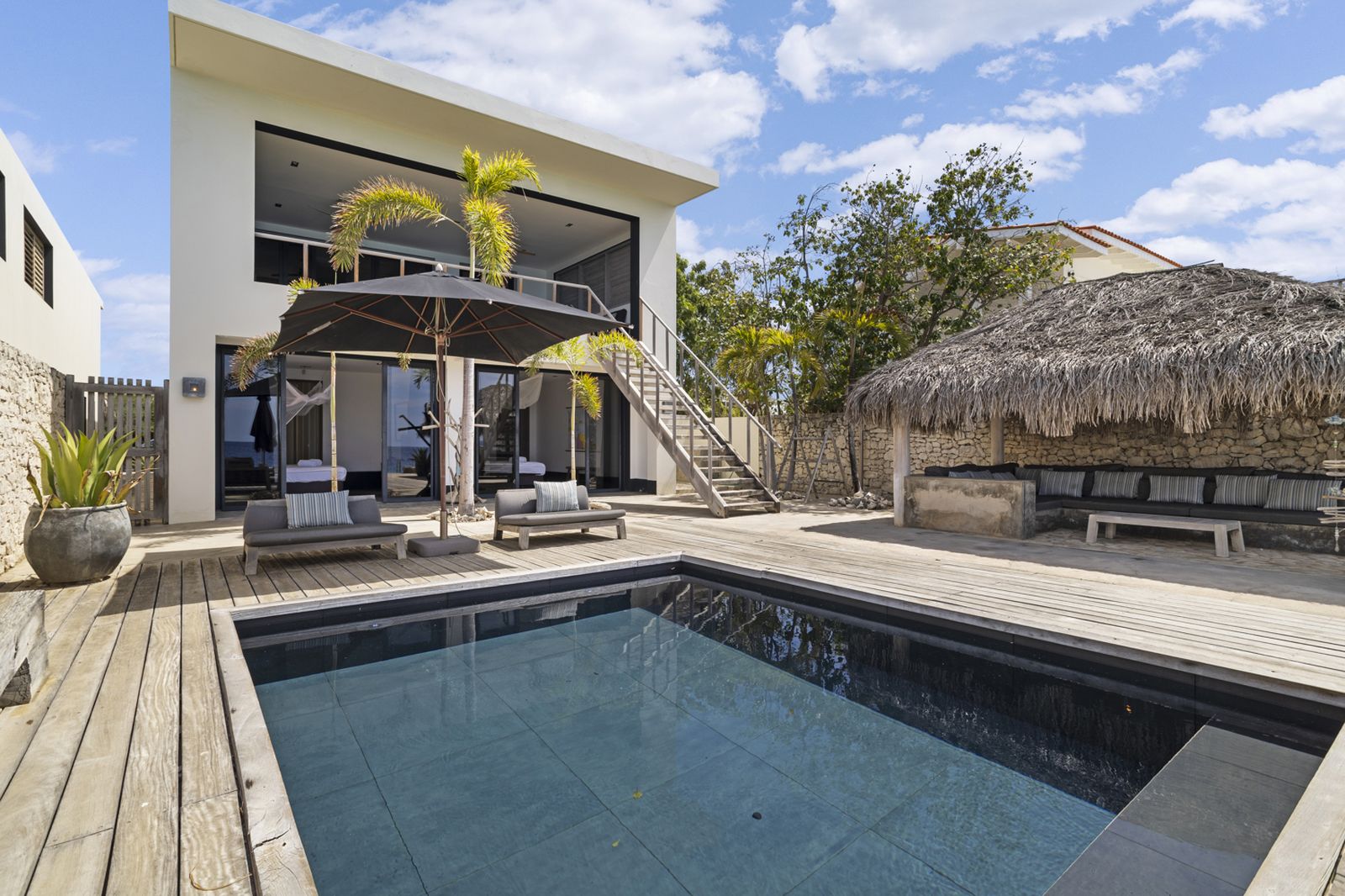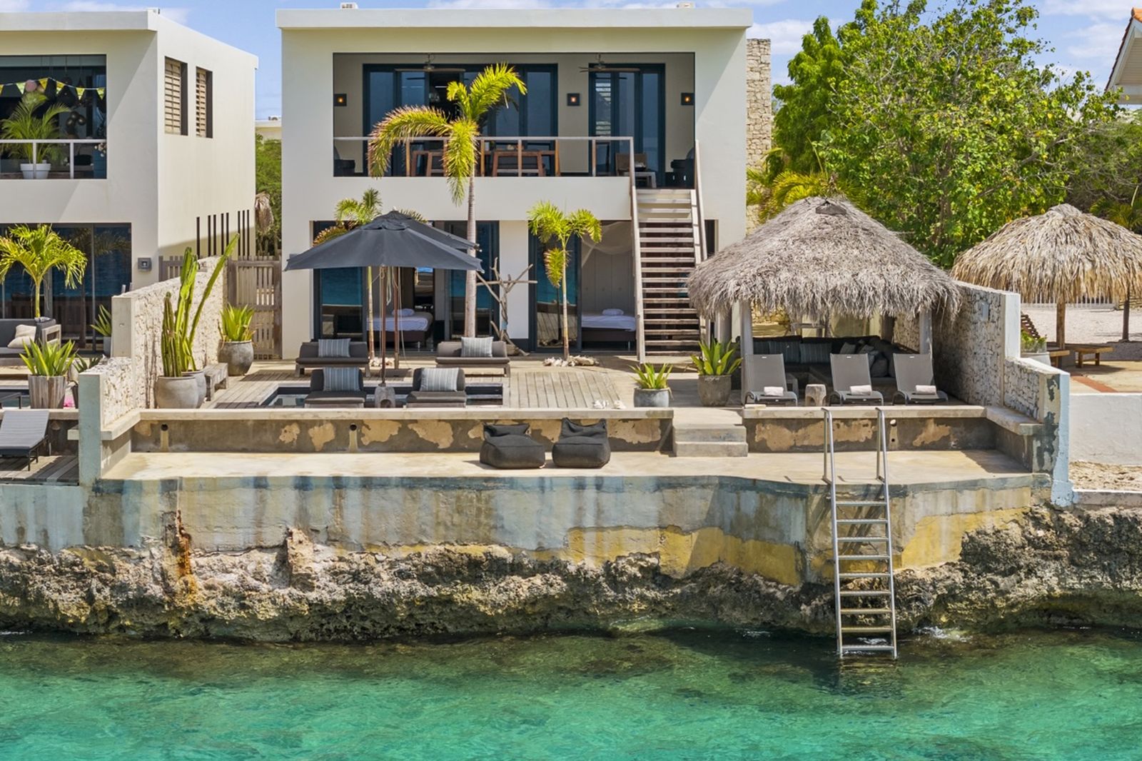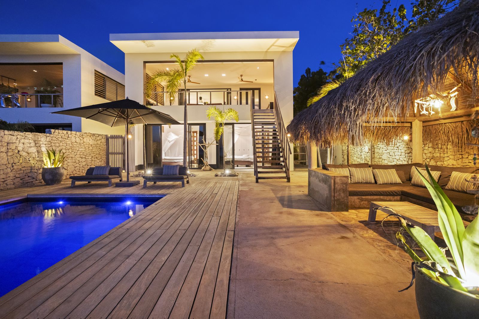 Buiten vindt u het zwembad voor een verkoelende duik, of neem de trap de zee in en ga snorkelen om schildpadden te spotten! Onder de palapa kunt u even aan de zon te ontsnappen met een drankje en genieten van het prachtige uitzicht.