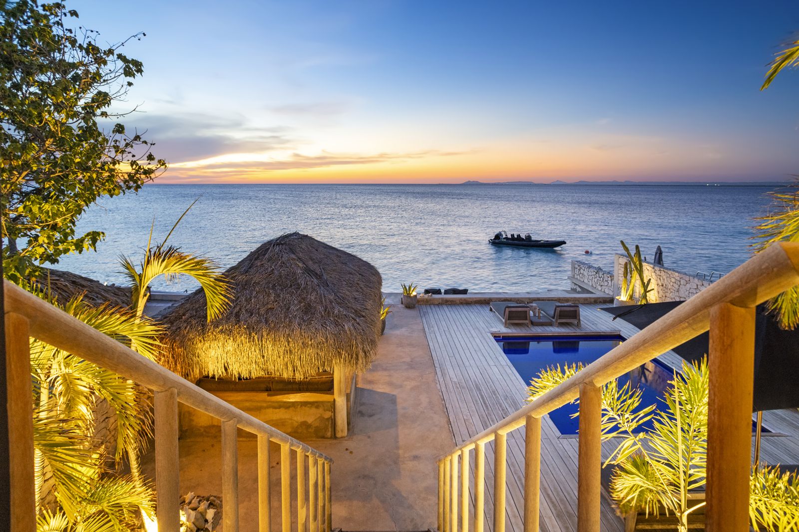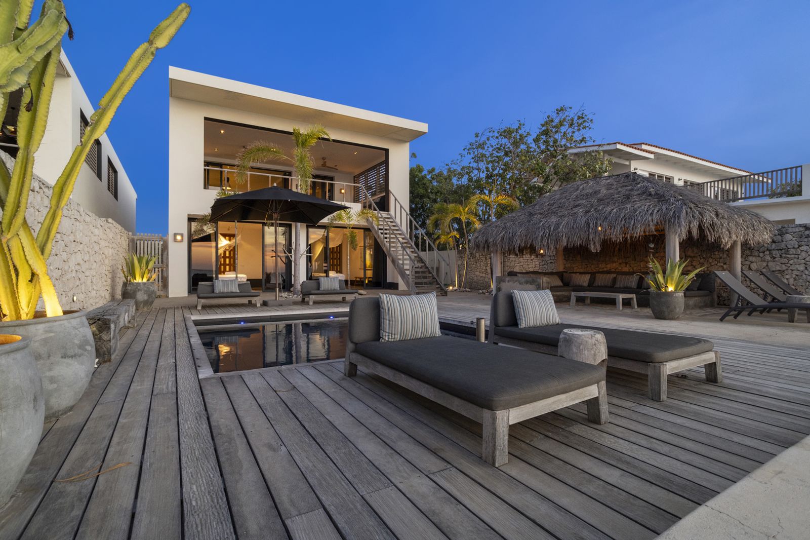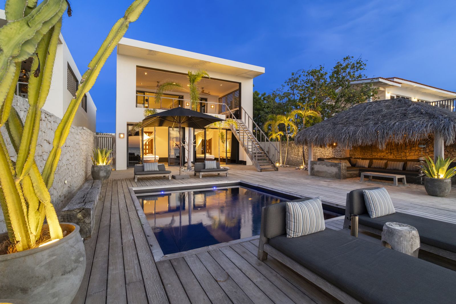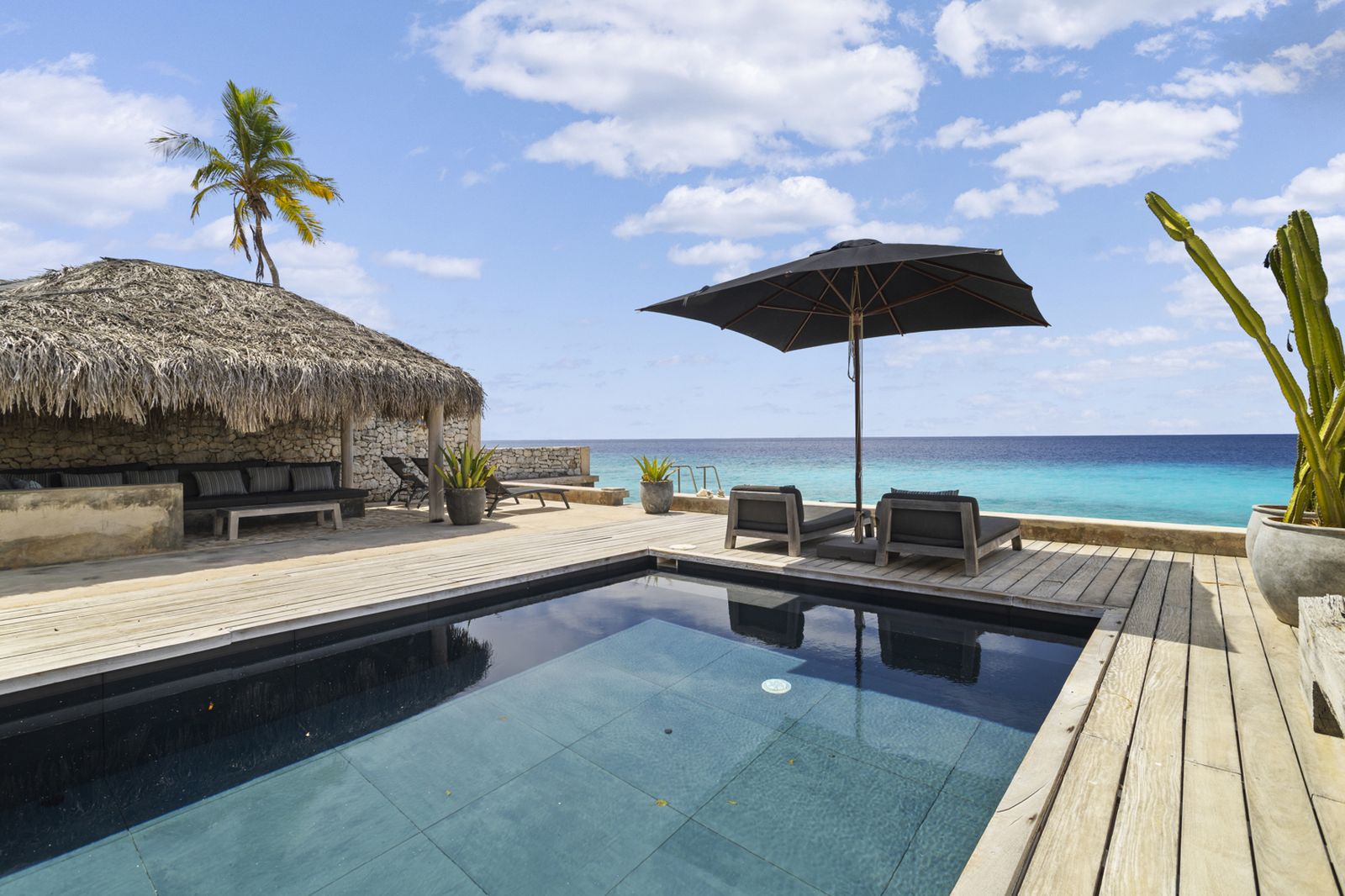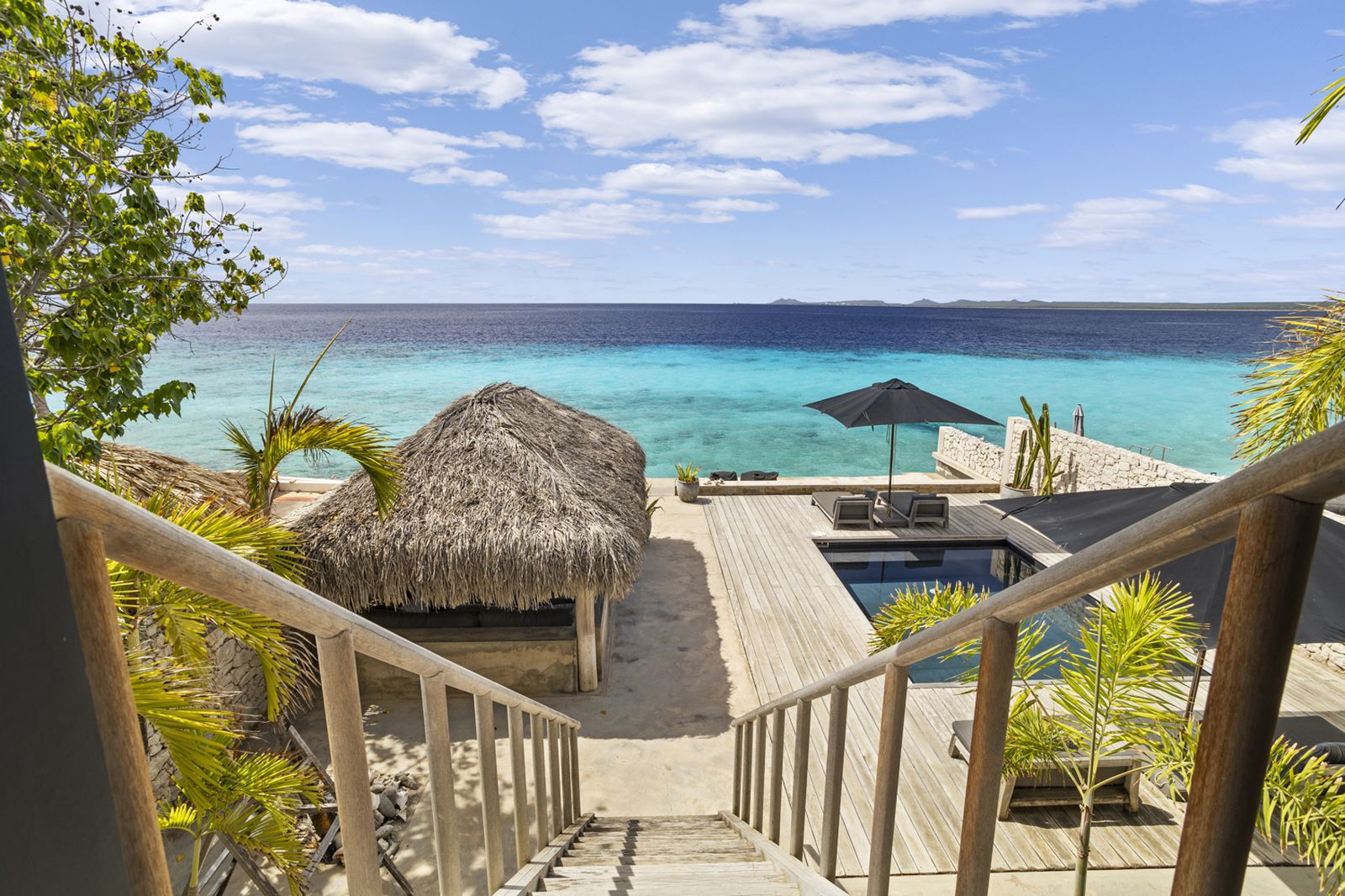 Buiten vindt u het zwembad voor een verkoelende duik, of neem de trap de zee in en ga snorkelen om schildpadden te spotten! Onder de palapa kunt u even aan de zon te ontsnappen met een drankje en genieten van het prachtige uitzicht.