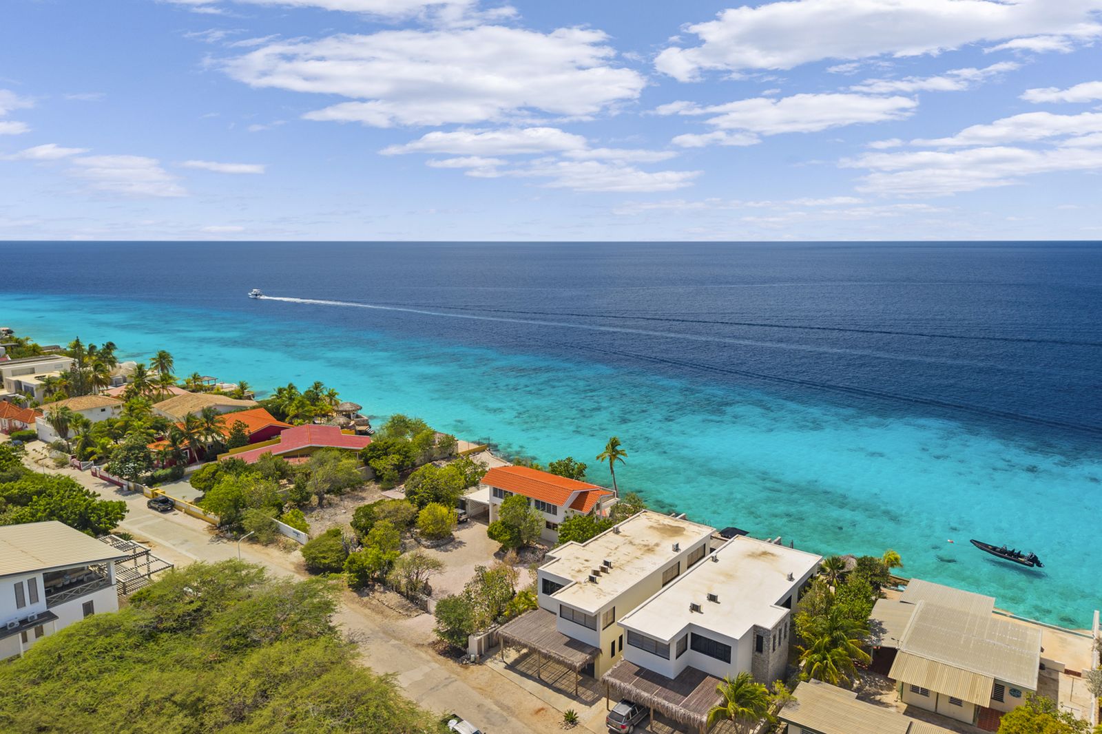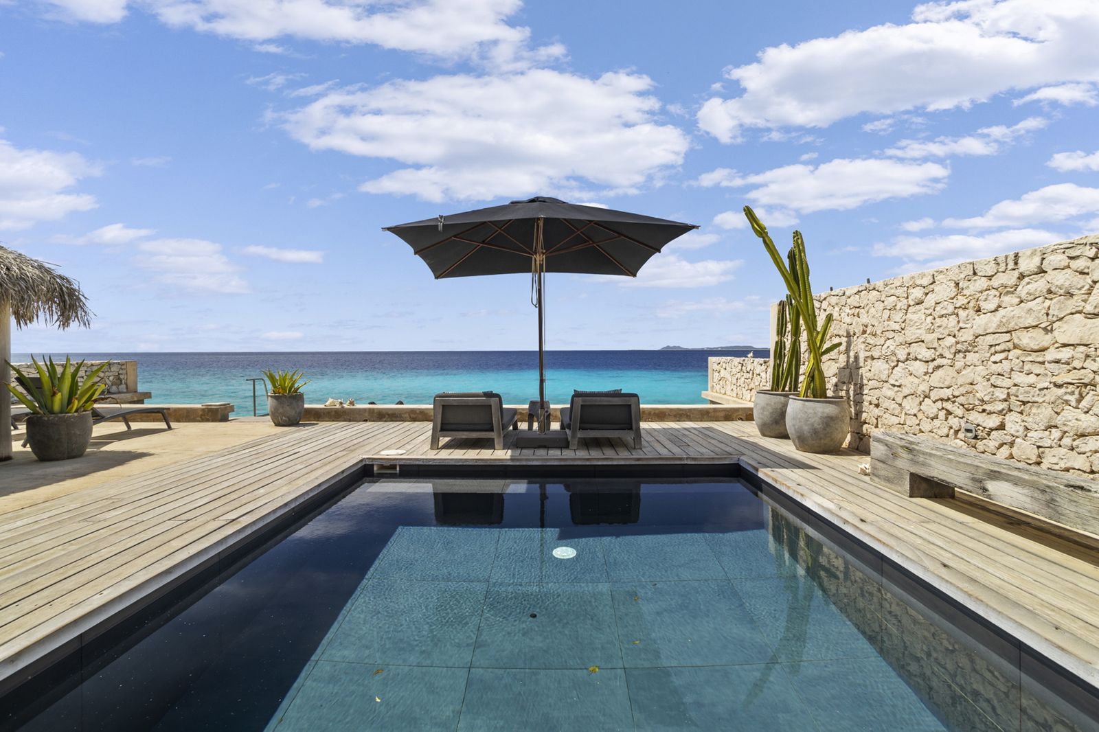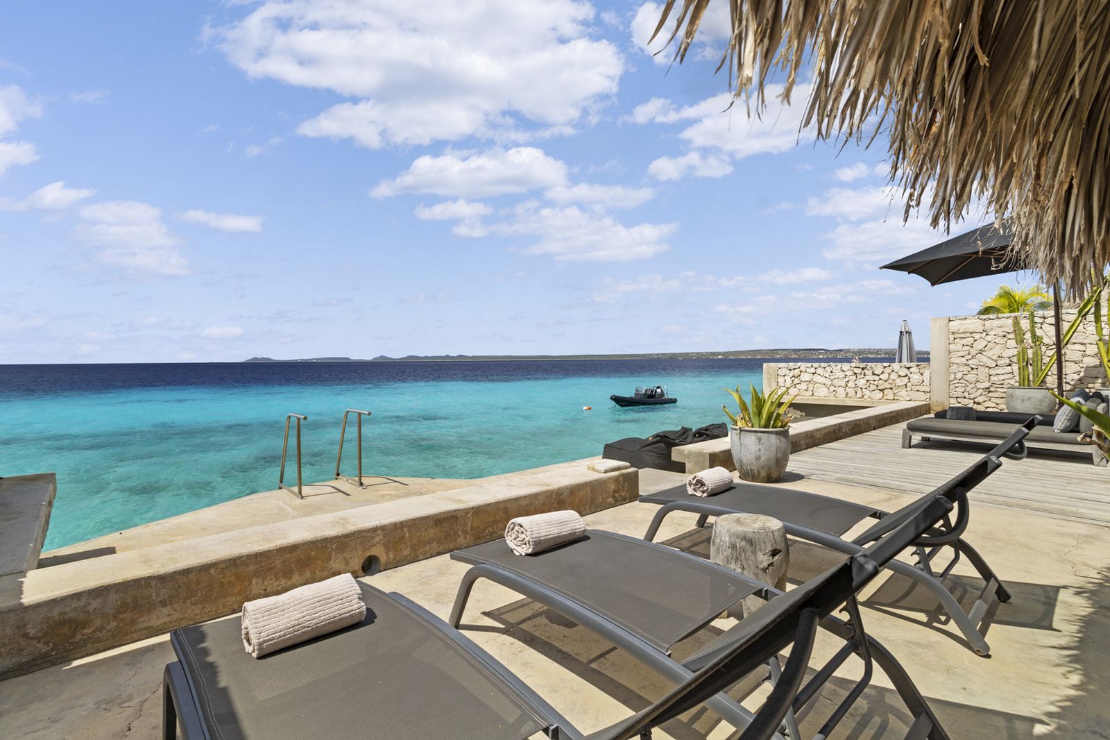 Nos Shelu is een van de kenmerkende villa’s van de Nederlandse ontwerper Piet Boon op Bonaire. Het is gelegen in het populaire gebied Punt Vierkant en ligt direct aan zee. Vanuit de villa kunt u via een trap direct de zee in en dit huis is daarom een uitstekende plek voor duikers en snorkelaars. Het huisrif voor de villa is geweldig en er zijn veel andere duikplekken in de buurt. Ook ligt de villa vlakbij het bekende kite strand Atlantis en op 10 min rijden van Lac Bai, waar u kunt windsurfen.