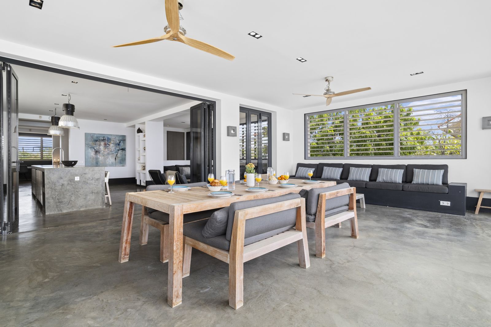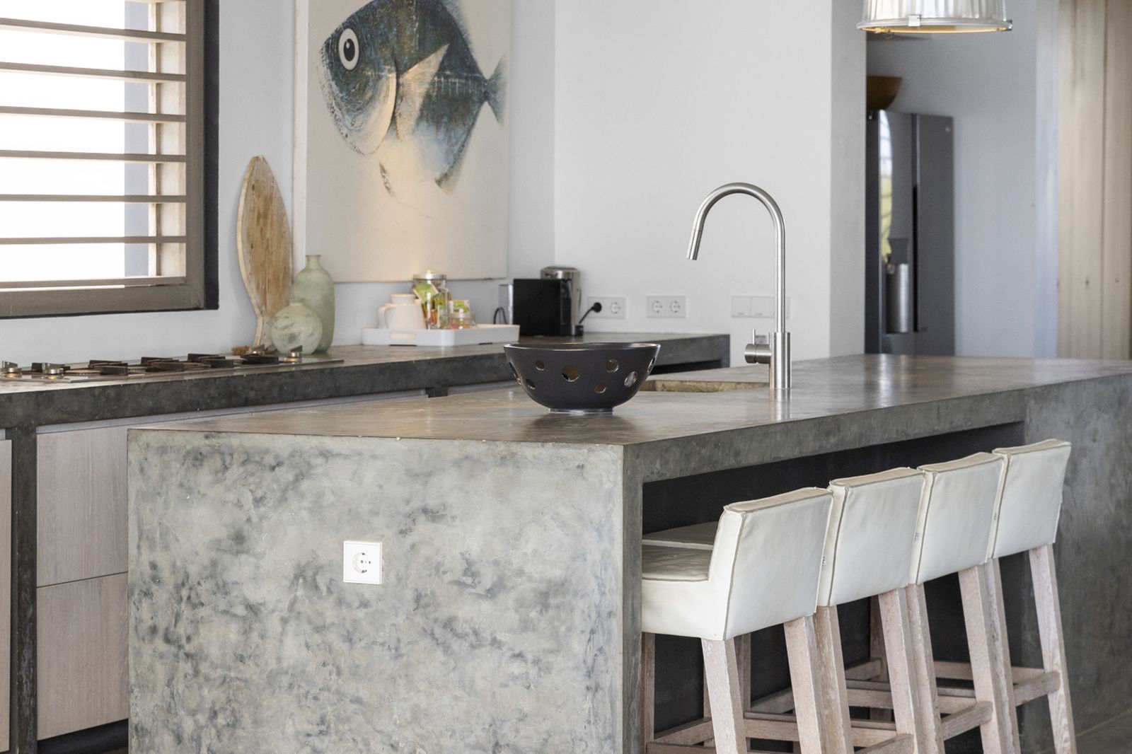 Net als alle andere Piet Boon villa’s heeft Nos Shelu een luxe uitstraling met prachtige design meubelen. Het huis geeft je een binnen / buiten gevoel en is gebouwd op een manier die optimaal profiteert van de wind.