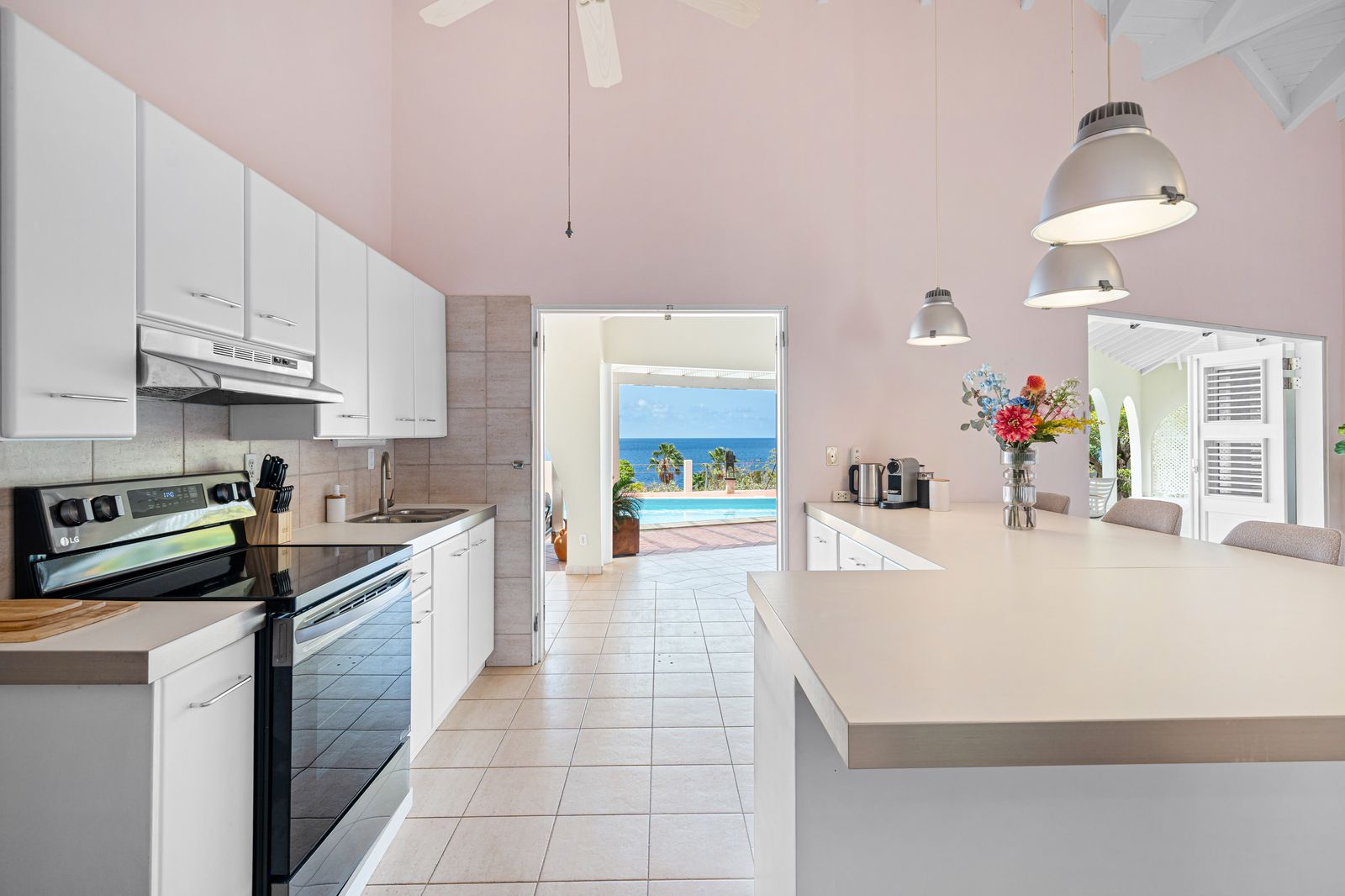 In de keuken vind je alles wat je nodig hebt, inclusief een groot eiland met barkrukken, perfect voor een ontbijt samen of een drankje in de avond. Buiten nodigt het privézwembad uit om af te koelen terwijl je van het uitzicht geniet.