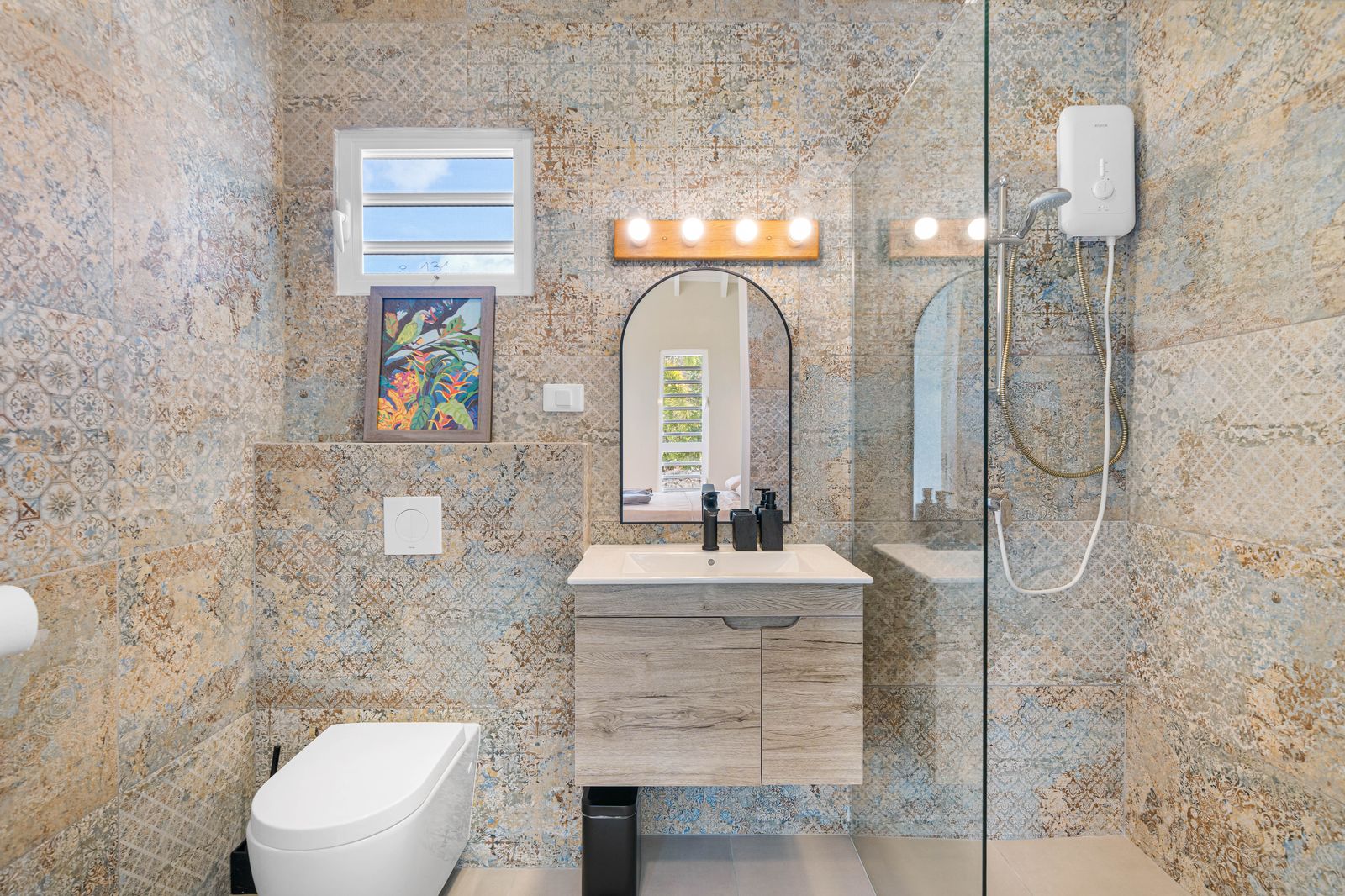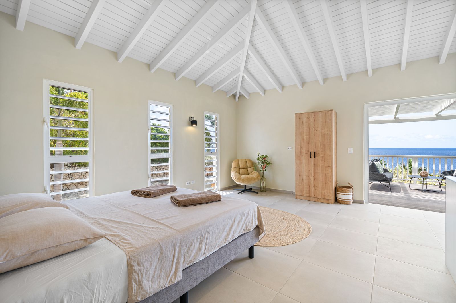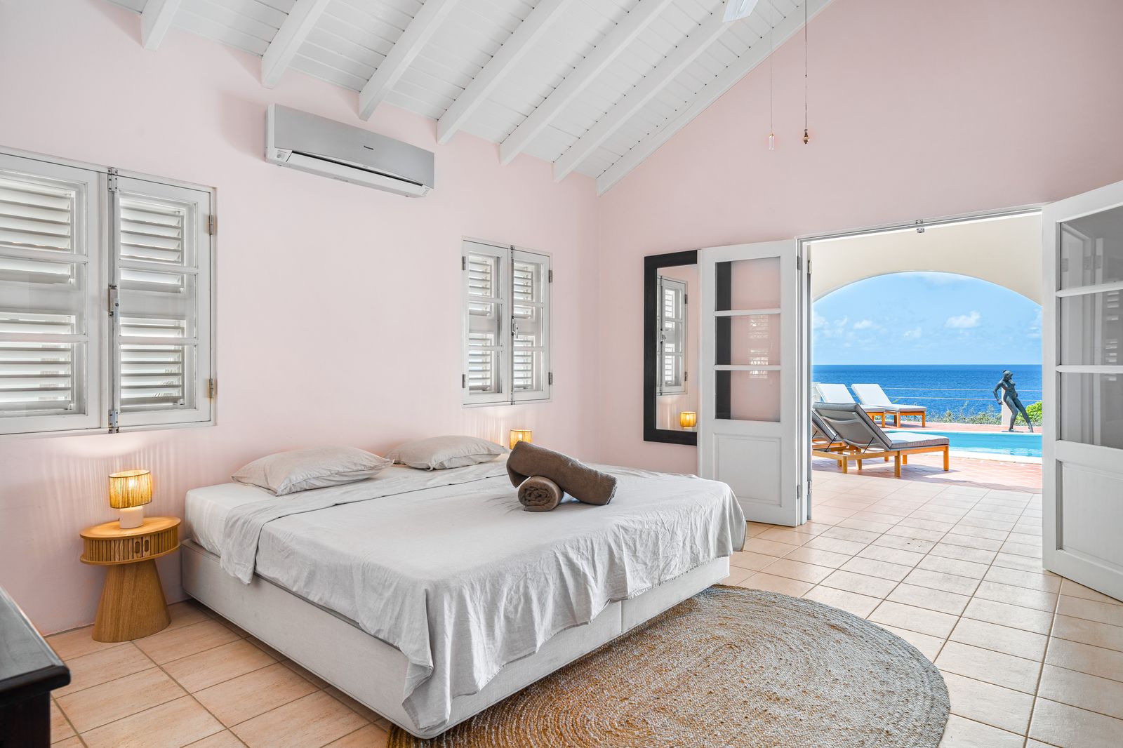 Het hoofdhuis van de villa heeft drie slaapkamers, allemaal met een eigen badkamer. Daarnaast is er een extra gastentoilet. Alle slaapkamers hebben airconditioning en een mooi uitzicht op de oceaan, waardoor je echt tot rust kunt komen.