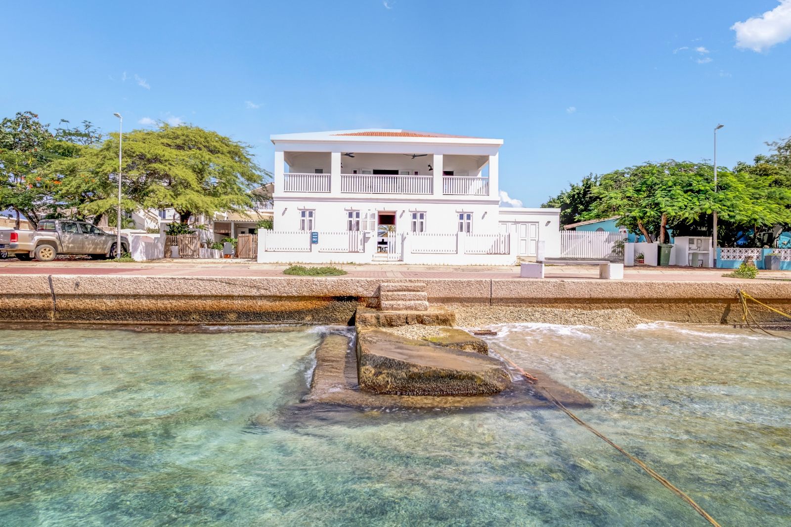 Beautiful Ocean Front Villa located on the boulevard of Kralendijk. Offering truly breathtaking views of the Caribbean blue sea, the boats along the coast, and Klein Bonaire. Right at your doorstep, a small pier provides direct access to the stunning sea for a refreshing swim.