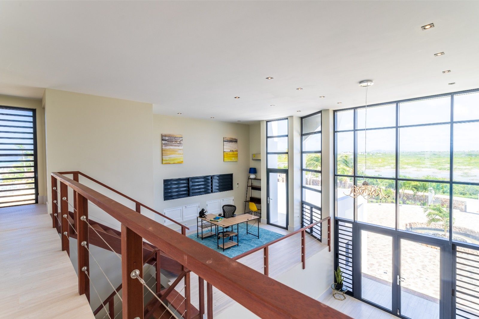 Naast de 5e slaapkamer vind je de volledig uitgeruste keuken en de woonkamer met een grote smart-tv! Je kunt binnen genieten van een heerlijk ontbijt/lunch/diner aan de grote tafel of buiten genieten van het Caribische weer aan de grote tafel op de veranda!